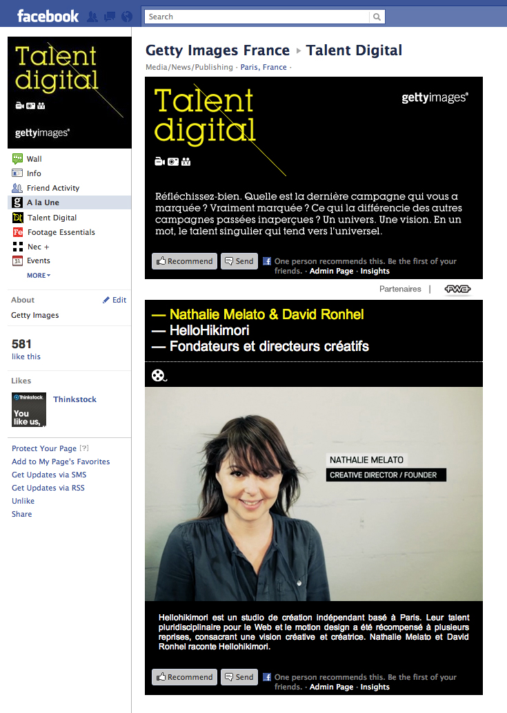 Avec Talent Digital, accessible via Facebook dès lundi prochain, Getty Images France va questionner les créatifs sur leurs motivations, leurs inspirations, ou encore leur vision de l’avenir. Un focus sera fait sur le studio français maintes fois recompensé, Hellohikimori.