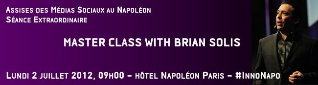 Afin de répondre à ces différentes problématiques, Brian Solis, Principal Analyst chez Altimeter Group, viendra animer une Master Class, organisée dans le cadre de la prochaine édition des Assises des médias sociaux. Ce rendez-vous se déroulera le 2 juillet prochain, au matin, à l’hôtel Napoléon à Paris.