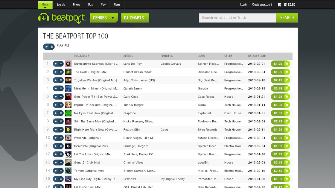 Fondé en 2004, Beatport dispose aujourd’hui d’un catalogue de plus d’1 million de titres, dont la plupart en exclusivité et revendique 40 millions d’utilisateurs actifs.