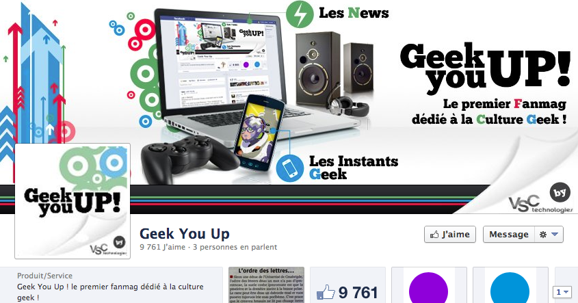 8 Février: Lancement de sa 1ère web série disponible sur la page Facebook de son FanMag « Geek you up ! ». Celle-ci, d’une durée de 8 épisodes, fait découvrir aux internautes de nombreux objets high tech via 3 acteurs complètement geeks.
