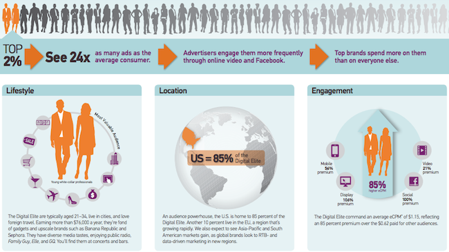 Qui sont ces 2% des internautes qui voient 24 fois plus de publicités que les autres? Turn, fournisseurs américains de technologies RTB, revient sur les caractéristiques de l’audience digitale en France et ces annonceurs qui dépensent en moyenne 85% de plus en publicité pour atteindre « l’élite digitale ».