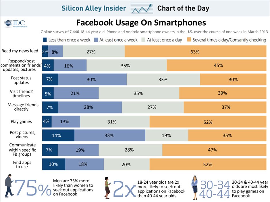 IDC, en partenariat avec Facebook, publiait hier les résultats de son étude « How Smartphones and Social keep us engaged » réalisée durant le mois de mars auprès de 7 446 mobinautes américains.