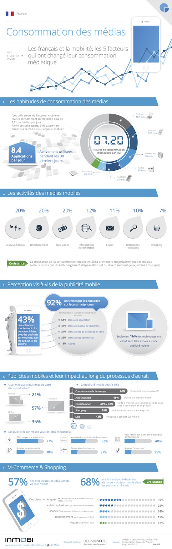 Le réseau publicitaire mobile InMobi publie, à l’occasion du World Mobile Congress, les conclusions d’une étude sur la consommation de médias mobiles de 15 000 mobinautes dans le monde et en France.