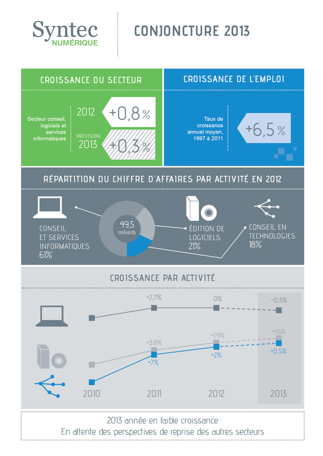 [Infographie] Le Syntec numérique prévoit une légère baisse de croissance en 2013