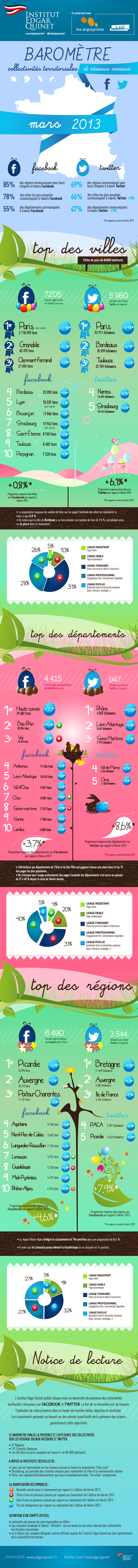 L’institut Edgar Quinet publie les résultats mensuels de son baromètre sur les collectivités territoriales et les réseaux sociaux, résumés ci-dessous dans cette infographie.