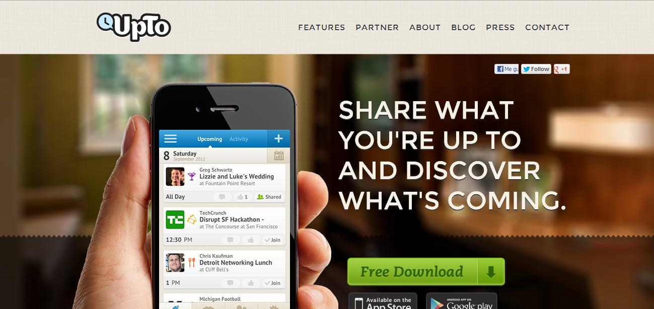 UpTo édite une application qui permet aux utilisateurs de suivre les calendriers de leurs contacts et de publier leurs propres horaires pour que ceux-ci soient visibles par des groupes spécifiques comme leurs collègues, leurs amis, leur famille ou les fans d’une équipe sportive particulière ou d’un musicien.