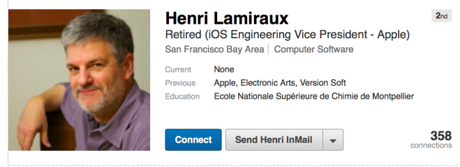 Avant Apple, Henri Lamiraux a fait un passage chez Electronic Arts et Version Soft.