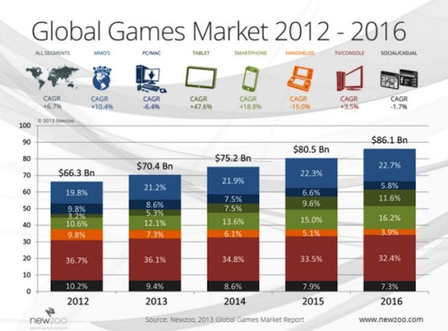 En 2016, les jeux sur supports mobiles représenteront ainsi 28% du marché, soit plus du double d’aujourd’hui.