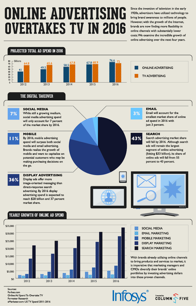 L’infographie de la semaine: les investissements de la publicité online dépasseront ceux de la publicité TV en 2016?