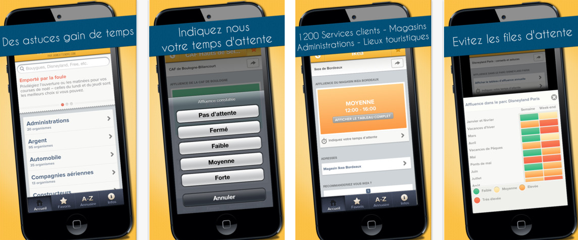 Le site jaimeattendre (identifié « Startup de la semaine par FrenchWeb en 2010), qui référence les tableaux d’affluence de service client ou d’administrations, a récemment lancé son application mobile 02 Minutes d’Attente.