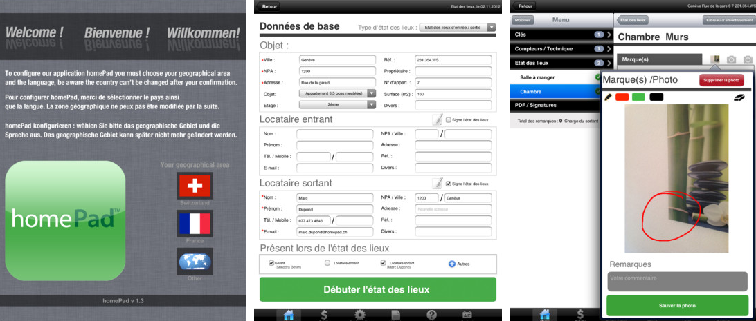 Développée « par et pour des professionnels », HomePad est une application immobilière gratuite destinée à la réalisation d’états des lieux sur iPad. Elle permet notamment de relever les dégâts à l’aide de mots-clés et de prises de photos.