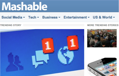 Sept ans après une ouverture solitaire par l’écossais Peter Cashmore, le petit blog Mashable est devenu un site d’information incontournable sur les réseaux sociaux qui emploie 40 personnes dans ses bureaux new-yorkais de Park Avenue. Cashmore s’est payé le luxe de recruter Lance Ulanoff, (l’ancien rédacteur en chef du site PC Mag qui était aussi vice-président en charge des contenus chez Ziff Davis) et Ken Detlet (qui travaillait à la publicité chez Dow Jones) pour attirer des grandes marques. Cashmore a signé des partenariats avec CNN et le quotidien USA Today. Il a financé lui-même son expansion souligne le New York Times En septembre il a attiré plus de 17 millions de visiteurs uniques et traite aussi l’actualité américaine ou internationale, un nouveau pari.