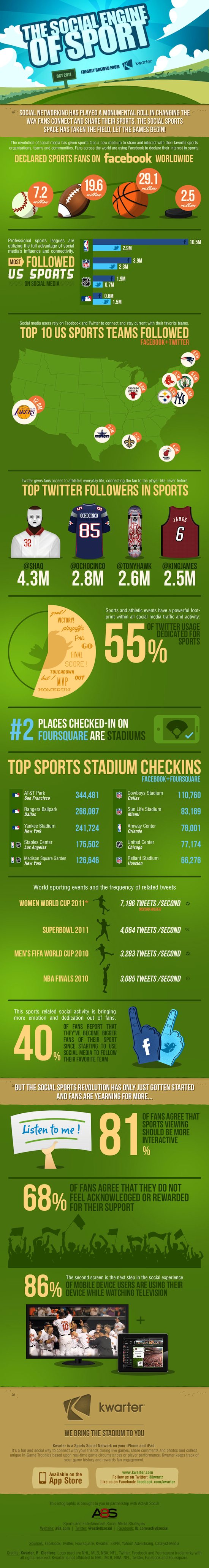 NB: l’infographie a été mise à jour de notre coté car nous n’avons pas pu confirmer une stats avec ESPN. L’infographie updatée se trouve chez nous à cette adresse: http://kwarter.com/the-social-engine-of-sport.htm