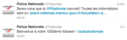 - Une page Facebook et un compte Twitter, qui lui permettent d’être en contact direct avec les internautes, mais également de partager des communiqués officiels, des vidéos, des interviews, et tout ce qui peut permettre de mieux faire connaître le travail quotidien de la Police. La première, créée il y a près d’un mois et lancée officiellement ce matin, compte déjà 22 700 fans, et le 2e, créé le 1er décembre, dénombre 1 080 abonnés.