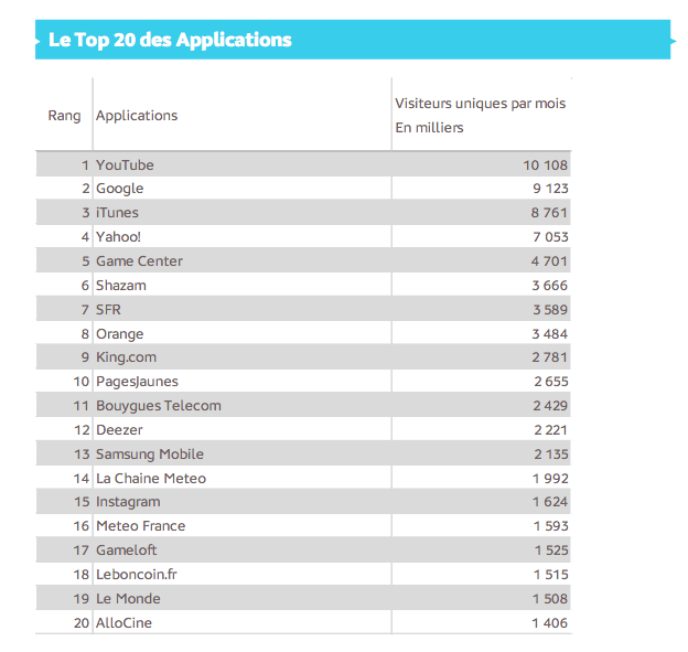 Top 10 des applications et sites mobiles consultés en juillet